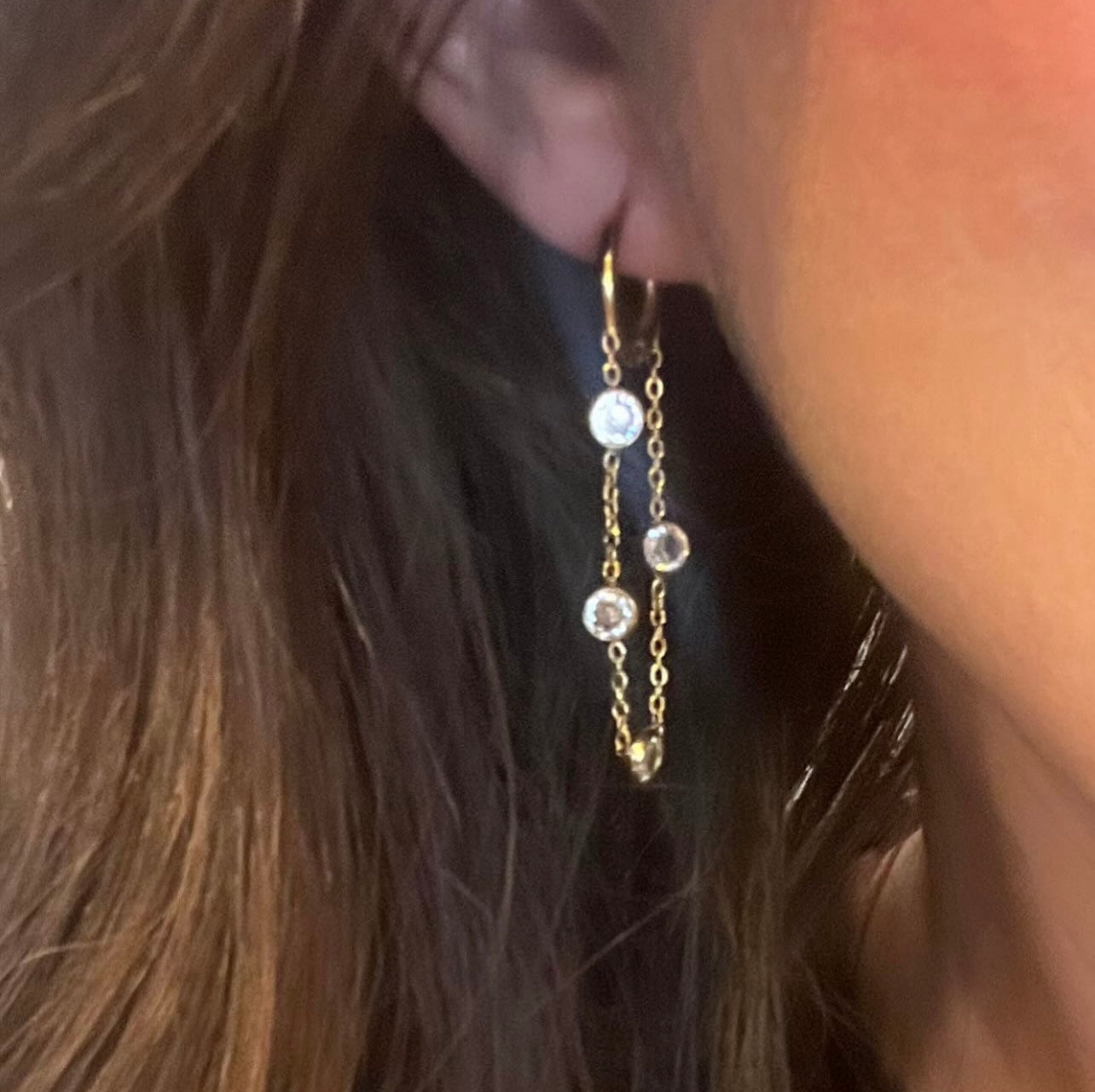 Weightless, 18kt gold plated over stainless steel drop earrings with a clear cz stone. Water and tarnish resistant.